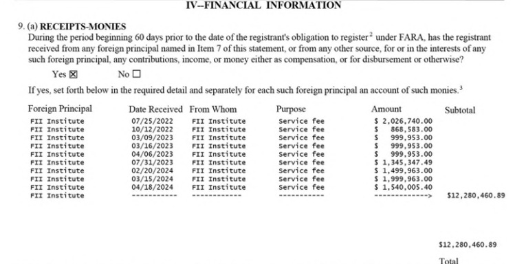 The documents show that Richard Attias & Associates have raked in over $12 million in payments from FFI since mid-2022.